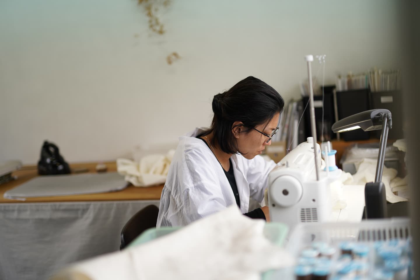 自身のウェディングドレスの製作をきっかけに、服の製作をはじめ、【product by miyaiworks】として受注製作活動をスタート。 印刷物などのデザインワークも行い、 2023年には、念願だったオーガニックの食品や手仕事品を扱う小さな商店【My SHOP by 38_WORKS.】をオープン。